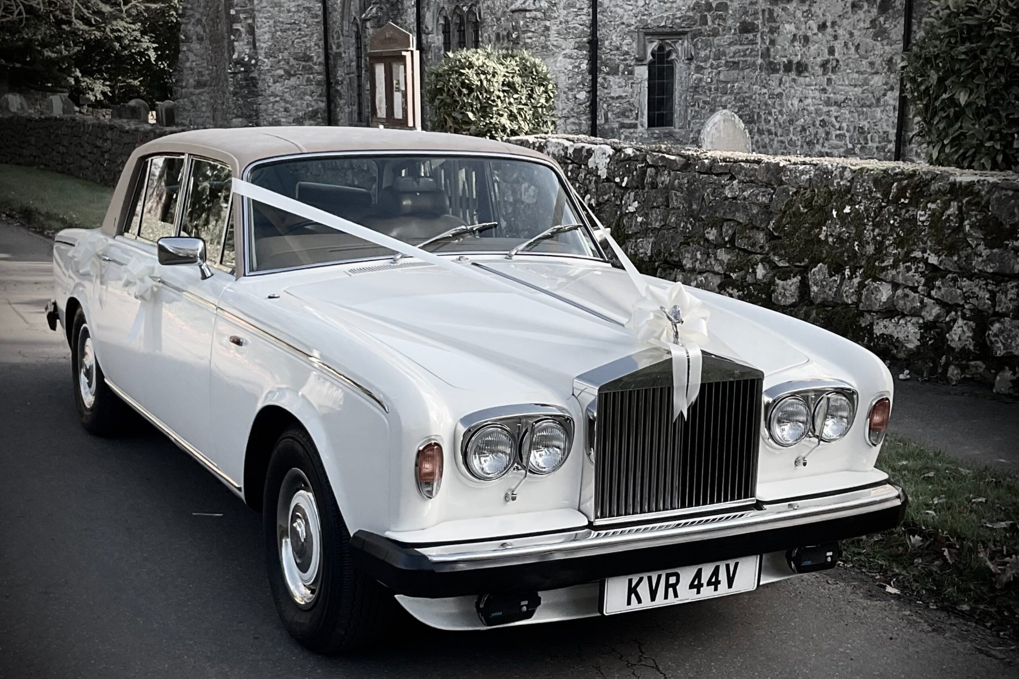 The quintessential British wedding car. Our Silver Shadow II, finished in Old English White, is the embodiment of understated elegance. With its sweeping lines, Spirit of Ecstasy mascot, and sumptuous leather interior, it provides a truly regal arrival.